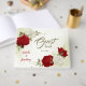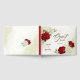 Beau livre d'hôtes mariage avec fleurs rouges et blanches et feuilles verts Les détails de la parties scintillant d'or sont simulés. POUR PLUS DE PRODUITS CORRESPONDANTS cliquez sur la collection ci-dessus ou contactez-moi