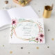 LIVRE D'OR | Cadre de style terrarium avec fleurs de printemps en rose et sauge clair feuilles d'eucalyptus vert autour du cadre. Une combinaison de calligraphie de script combinée à une disposition de texte minimaliste de style contemporain en fait une suite mariage de style tendance. Conception créée pour TheBarefootBride™ par © WhimsicalArtwork™. Il fait partie d'une collection de papeterie mariage avec accessoires mariages assortis également baby shower et autres articles de papeterie occasion. N'hésitez pas à nous contacter si vous avez besoin d'aide.