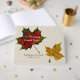 livre d'hôtes à thème mariage de automne réalisé en ivoire antique, avec des photos de deux feuilles d'automne colorées. Personnalisez le texte personnalisé pour votre mariage d'automne.
