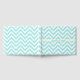 Livre d'hôtes mariage élégant réalisé dans un motif en zigzag bleu et blanc de chevron aqua. Un blanc ocre doré, voir à travers la bande, court à travers le front central, avec un texte personnalisé couleur aqua. Personnalisez le texte pour votre jour de mariage. Des produits correspondants sont disponibles.