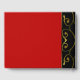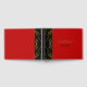Livre d'hôtes mariage rouge frappant avec zone de colonne noire, avec des motifs tourbillonnants de couleur or. Le texte graphique en tons or indique Guest Book. Personnalisez le texte de la coutume noire, pour votre jour de mariage.