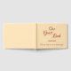 Ce livre d'hôtes de base comporte les messages "Notre livre d'hôtes" et "S'il vous plaît laissez-nous un message!", ainsi qu'une date d'événement customisée. Le texte est de couleur rouge foncé, l'arrière - plan est de couleur beige. Un livre d'or générique et personnalisable comme celui-ci peut être utilisé lors d'un événement tel qu'une fête d'anniversaire, une fête de retraite, un baby shower, un mariage, une réunion de famille ou tout autre événement avec des invités qui peuvent vouloir laisser un message.