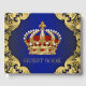 Livre d'or avec belle couronne royale rouge et or sur un arrière - plan royal bleu et or tourbillon. Ce livre d'hôtes à thème pourcentage royal bleu et or est facilement customisé pour votre événement en ajoutant simplement le texte de votre choix.