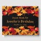 Personnalisez ou retirez facilement le texte de ce beau livre d'anniversaire qui affiche des couleurs de feuillage d'automne de rouge, orange, jaune et marron sur un arrière - plan noir.