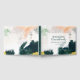 Cet abstrait livre d'hôtes coloré est parfait pour votre mariage boho moderne unique. Peint à la main avec des marques texturées de vert émeraude foncé, de pêche et de moutarde, le tout recouvert d'un carré transparent minimaliste, il est sûr de donner à votre occasion une sensation bohème simple mais rustique.