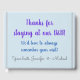 Ce livre d’or minimaliste contient un message comme "Merci d’avoir séjourné à notre B&B!" et un message comme "Nous aimerions toujours vous rappeler votre visite!", ainsi qu’un nom d’hôte qui peut être personnalisé. Il peut être utilisé pour enregistrer les messages des clients dans un bed & breakfast.