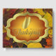 Une couverture de feuilles d'automne colorées en rouge vif, oranges, dorées et marron fournissent la goutte arrière pour ce magnifique design Thanksgiving. Les feuilles sont surmontés d'un "Bon thanksgiving" en "or" frappant et d'or profond dégradé, ce qui en fait le choix parfait pour garder les souvenirs de Thanksgiving. Les entrées de famille, d'amis ou d'invités d'honneur donnent lieu à une belle tenue de vacances.