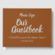 Ce livre d'or minimaliste présente les messages "Notre livre d'or" et "S'il vous plaît signer", ainsi qu'une date et une description personnalisées de l'événement/de l'occasion. Le texte est gris coloré et l'arrière - plan est marron. Un livre d'invité générique et personnalisable comme celui-ci peut être utilisé lors d'un événement tel qu'une réunion de famille, une fête de retraite, un baby shower, une célébration d'anniversaire de mariage, une fête d'anniversaire ou tout autre événement.