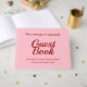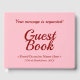 Ce livre d'or simple contient les messages "Livre d'or" et "Votre message est demandé !", ainsi qu'un nom personnalisé d'événement/d'occasion. Le texte est de couleur rouge foncé, et l'arrière - plan est de couleur rose. Un livre d'invité générique et personnalisable comme celui-ci pourrait peut-être être utilisé lors d'un événement tel qu'une réunion de famille, une fête d'anniversaire, une célébration d'anniversaire de mariage, un mariage ou un autre événement avec des invités qui pourraient vouloir laisser un message.