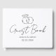 Ce livre d'invités de mariage personnalisé présente une calligraphie et un graphique d'anneaux de mariage de diamant, ainsi que les noms des mariées et des mariées et la date du mariage sur le fond. Vous pouvez également ajouter les initiales de mariée et de mariée à l'arrière, supprimer ou modifier le texte de votre choix.