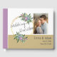 Un beau livre d'hôtes pour votre journée spéciale avec un design botanique violet et des anneaux d'or - veillez à mettre à jour la photo et le texte avant de mettre dans votre panier!