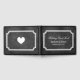 Livre d'invité personnalisées en noir et blanc en tableau noir et mariage avec bordure fantaisie et typographie élégante. Accessoires personnalisés pour mariée et mariée / bientôt mariée. Laissez votre livre d'or être signé par les invités, la famille et les amis. Lettrage vintage avec image arrière - plan de carton à craie. OEuvre d'art tendance rétro avec tableau noir. Faites votre propre livre d'or unique avec l'aide de ce magnifique modèle.