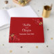 Ce "Livre d'Invité Floral Rouge et Or" est une façon de garder des souvenirs de qui était à votre mariage. Les roses rouges à l'or délicat créent un look époustouflant, symbolisant la beauté de votre histoire d'amour. Commandez aujourd'hui !