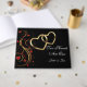 Ce livre d'hôtes est montré en noir avec une belle impression de deux coeurs avec des noms d'échantillons personnalisés. Customisez ce livre et changez le texte à votre place.