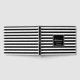 Ce livre d'hôtes mariage noir et blanc présente des rayures horizontales. Vous pouvez le personnaliser avec les noms du couple et la date du mariage. "Notre livre d'or mariage" apparaît sur la colonne vertébrale.