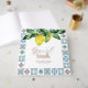 Invitation vos invités mariages à partager leurs souhaits et leur sagesse avec cet élégant livre d'or mariage aquarelle. Doté d'un design côtier italien avec des citrons d'aquarelle et d'une frontière de carrelage Amalfi avec des feuilles d'or rose pour vos noms et votre date de mariage, ce livre d'hôtes personnalisé est parfait pour les mariages de destination et de jardin. Le livre revient à la photo de votre couple encadrée par une planche en feuille d'or rose sur une solide couleur bleu Mykonos. Pour plus d'idées de livres d'inscription et de modèles de mariage de destination, visitez www.zazzle.com/dotellabelle. Art unique et design de Victoria Grigaliunas de Do Tell A Belle.
