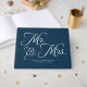 D'or Livre d'invité mariage, Mr & Mrs, Marine et blanc