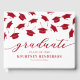 Livre d'or moderne de la fête de remise de diplômes avec un simple arrière - plan blanc qui peut être changé à n'importe quelle couleur, casquettes en carton rouge, et un modèle de texte moderne qui est facile à personnaliser.