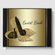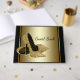 Livre d'invités Womans noir et or talon haute chaussure avec une paire de parties scintillant or talon haute chaussures sur un élégant arrière - plan noir et or. Vous pouvez facilement customiser ce beau livre d'anniversaire pour femmes noires et or pour votre événement en ajoutant simplement votre texte dans le style de police de votre choix. Il s'agit d'un dessin imprimé sans véritable parties scintillant.