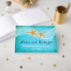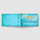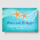 Espèce d'étoile de mer et voile turquoise tropicale destination plage livre d'or avec un couple d'étoiles de mer orange sur un voile blanc ondulé bleu turquoise et turquoise grunge taché arrière - plan.