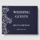 Un livre d'hôtes Elégant Marine et Mariage blanc conçu avec des garnitures élégantes de bordure blanche sur un arrière - plan de marine. Le texte avant comprend : INVITÉS MARIAGES, les prénoms de l'épouse et de la salle et la date du Mariage. Pour personnaliser, insérez simplement vos détails dans notre modèle facile, en remplaçant l'exemple de texte. N'oubliez pas de consulter l'ensemble de la collection Marine et White Elegant Wedding Collection pour assortir les accessoires fixes et fixes.