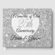"Toutes ces parties scintillant ne sont pas dorées. . ." ou argent. Et, sans aucun doute, tout un mariage de 25 ans n'est pas un "bonheur conjugal". Ce fabuleux livre d'or, en revanche, fait un ravissant souvenir de cet événement phare. . . . espace pour que les invités signent et partagent leur souvenir préféré du couple célébrant. Une toile de fond d'argent "scintillant" est recouverte d'un coeur blanc qui offre un contraste très nécessaire pour l'image texte "25ème". Ceci est encadré par le texte approprié qui couronne le texte "Bridge & Groom" que vous pouvez personnaliser avec les noms du couple.
