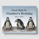 Personnalisez ou retirez facilement le texte de ce livre d'or qui présente d'adorables pingouins africains debout sur une corniche rocheuse contre un arrière - plan bleu ciel. Ce sont des oiseaux aquatiques sans vol dont les ailes sont devenues des palmes. Chacune a une bande noire et des taches noires sur la poitrine. Le motif de taches est unique pour chaque pingouin, tout comme les empreintes digitales humaines.