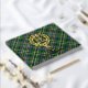 Clan Scott badge crête entouré d'une courroie et boucle sur l'arrière - plan écossais vert. Texte avant, arrière et colonne vertébrale personnalisé.