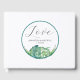 Ce livre d'hôtes mariage présente des feuilles de palmiers tropicaux d'aquarelle dans des tons botaniques verts. Le mot "Amour" est placé dans une élégante typographie de script. Utilisez les champs modèle pour ajouter vos noms personnalisés et votre date de mariage. Visitez www.zazzle.com/dotellabelle pour voir le thème complet du mariage de destination. Aquarelle de Victoria Grigaliunas de Do Tell A Belle