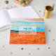 Customisez ce Vacation Beach House Guest Book avec nom de location. Idéal pour la location de cabine, de chalet ou de plage côté océan. Il dispose d'une belle plage abstraite de peinture orange et bleue. Facile à customiser avec vos propres informations. Conception de Jenn's Emporium.