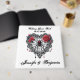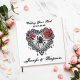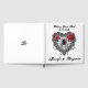 Ajoutez une touche de romantisme sombre à votre célébration avec ce livre d'hôtes mariage blanc carré qui présente un coeur en dentelle noire avec une toile d'araignée et une araignée, encadrée de roses rouges profondes. Personnalisé avec les noms du couple et la date du mariage, ce design mêle élégance gothique et subtilité Halloween. Parfait pour les couples qui planifient un mariage gothique romantique, une cérémonie d'Halloween ou une fête alternative, ce livre d'invités est un souvenir unique pour capturer des voeux et des souvenirs sincères lors de votre grand jour.