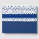 Élégant panneau d'invité bleu royal avec des graphiques en dentelle blanche, sur la moitié supérieure, avec un ruban bleu clair. Personnalisez le texte pour votre journée spéciale.