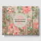 Bois rustique et papier artisanal à l'aspect mariage livre d'hôtes, avec de belles fleurs de corail rose arbre. Personnalisez le texte noir et le monogramme rose corail unique pour lire ce que vous voulez. Des produits mariages de fleurs de printemps rustiques correspondants sont disponibles.