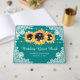 Complétez votre mariage turquoise rustique inspiré des fleurs de tournesol avec cet élégant livre d'hôtes turquoise avec des tournesols, des lampes à cordes et de la dentelle blanche fleurie. Éléments correspondants disponibles.
