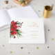 Ce livre d'hôtes mariage de Noël simple et classique présente un décor blanc vif et épuré avec des lettres noires et or simples et minimalistes et des accents calligraphiques manuscrits. Les ornements de belles et classiques couronnes vertes et rouges de Noël avec des traits d'or délicats créent une esthétique de vacances d'hiver parfaite tout en maintenant une élégance polie pour votre mariage de Noël ou tout autre événement spécial. Comme pour tous nos designs, si vous avez des questions concernant le design ou si vous souhaitez quelque chose spécialement fait pour coordonner avec votre mariage, n'hésitez pas à demander.