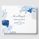 Elégant abstrait blanc et bleu feuilles tropicaux et fleurs