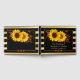 Un romantique livre d'hôtes mariage avec des tournesols colorés sur un arrière - plan doré chic rayé. Vous pouvez choisir votre propre couleur de fond pour remplacer le noir si vous voulez. Pour toutes les options, choisissez l'éditeur avancé.
