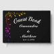 Modèle floral fantaisie sur le dos pour le livre d'or. Une vigne d'angle dans le coin à l'avant. Les noms de la mariée et du marié avec date et Livre d'Invité sont écrits sur le devant avec un arrière - plan noir. Personnalisez le texte pour vos informations.