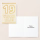 La façade de cette carte de voeux en feuille d'or accrocheuse, audacieuse et énergique, sur le thème de l'anniversaire, comporte le message "19 ans !". L'intérieur comporte un message de bienvenue d'anniversaire qui peut être modifié. Une carte de voeux comme celle-ci pourrait être une façon spéciale de commémorer le dix-neuvième anniversaire de quelqu’un. [~Z0000360]