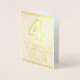 La façade de cette carte de voeux en or accrocheuse, énergique et audacieuse, sur le thème de l'anniversaire, comporte le message "4 ANS !". L'intérieur comporte un message de bienvenue d'anniversaire qui peut être modifié. Une carte de voeux comme celle-ci pourrait être donnée pour commémorer le 4e anniversaire de quelqu’un. [~Z0000360]