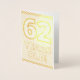 Le recto de cette carte de voeux en or, sur le thème de l'anniversaire, avec un accent particulier, audacieux et accrocheur, affiche le message "62 ANS !". L'intérieur comporte un message de bienvenue d'anniversaire qui peut être modifié. Une carte de voeux comme celle-ci pourrait être remise à quelqu'un qui célèbre son soixante-deuxième anniversaire. [~Z0000360]