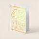 Le recto de cette carte de voeux en or à thème d'anniversaire, audacieuse et énergique, affiche le message "43 ans !". L'intérieur comporte un message d'anniversaire customisé. Une carte de voeux comme celle-ci pourrait être donnée pour commémorer le 43e anniversaire de quelqu’un. [~Z0000360]