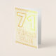 Le recto de cette carte de voeux en or accrocheuse, emphatique et audacieuse, sur le thème de l'anniversaire, comporte le message "71 ANS !". L'intérieur comporte un message d'anniversaire modifiable. Une carte de voeux comme celle-ci pourrait être donnée pour célébrer le 71e anniversaire de quelqu’un. [~Z0000360]