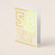 Le devant de cette carte de voeux audacieuse, énergique et attrayante, sur le thème de l'anniversaire, porte le message "50 ANS !". L'intérieur comporte un message de bienvenue d'anniversaire qui peut être modifié. Une carte de voeux comme celle-ci pourrait être une façon spéciale de commémorer le cinquantième anniversaire de quelqu’un. [~Z0000360]