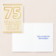 La façade de cette carte de voeux en feuille d'or accrocheuse, audacieuse et énergique, sur le thème de l'anniversaire, comporte le message "75 ANS !". L'intérieur comporte un message d'anniversaire customisé. Une carte de voeux d'anniversaire comme celle-ci pourrait être une façon spéciale d'envoyer un message d'anniversaire à quelqu'un qui célèbre son soixante-quinzième anniversaire. [~Z0000360]