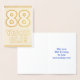 Le recto de cette carte de voeux en or à thème d'anniversaire, accrocheuse et audacieuse, affiche le message "88 ans !". L'intérieur comporte un message d'anniversaire modifiable. Une carte de voeux d'anniversaire comme celle-ci peut être utilisée pour envoyer un message de voeux d'anniversaire à quelqu'un célébrant son 88e anniversaire. [~Z0000360]