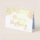 Elégante Real Gold Foil carte d'anniversaire avec des gouttes brillantes en blanc et un bleu clair et faux or gouttes à l'intérieur. Vous pouvez modifier Happy Birthday à partir du menu Personnaliser si vous voulez un mot différent. Design original par SunFreeStar.
