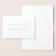 Se marier est l'un des plus beaux jours de la vie, et demander à ceux qui feront partie de ce jour spécial est tout aussi spécial ! Cette élégante, simple, moderne et minimaliste carte de demande en mariage pour célébrant avec feuille d'aluminium est le moyen idéal pour demander à cette personne spéciale de faire partie de l'un des rôles les plus importants de votre mariage !