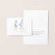 Elégante mini-carte de voeux mariage avec feuille d'argent texte lecture Félicitations et graphismes d'une mariée et marié chevauchant tandem sur un vélo. L'intérieur a du texte noir personnalisé prêt à être personnalisé. Grande petite carte à attacher à un cadeau mariage.