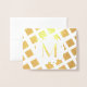 Monogramme dans un cercle au-dessus d'un motif géométrique.